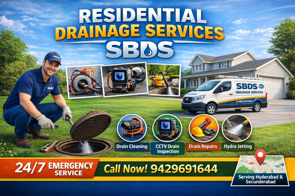 Swachh Bharat Drainage Solutions (SBDS) offers professional domestic and commercial drainage unblocking and unclogging services in Hyderabad, delivering fast, reliable, and long-lasting solutions across Hyderabad, Secunderabad, GHMC, and HMDA limits.